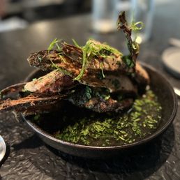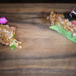 Overall great dinner with friends. The service was wonderful with servers dressed in black. We tried almost the whole regular menu. We had previously done the tasting menu but this menu was different and we chose to try these items. The whole table has to do the same experience. The beet salad, fried green tomatoes were excellent. Of the main dishes our favorites were the crusted fish and the lamb pappardella dish. Of the desserts I preferred the black sesame icecream over the apple pie. My least favorite was the Cobia collar. Yes it's the collar of the fish. I have had my share of whole fish where I don't need to try just the collar but I hear the health benefits are there.